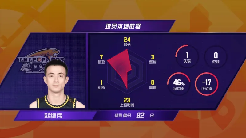 自上赛季季后赛后,赵继伟已阔别CBA赛场8个月。本轮面对新疆伊力特队,赵继伟首发登场,出色开启自己第13个CBA赛季,全场贡献24分7助攻,两项数据均为全队最高,正负值更是高达+17,位列全场第一。在赵继伟的带领下,辽宁男篮终结了此前的2连败。