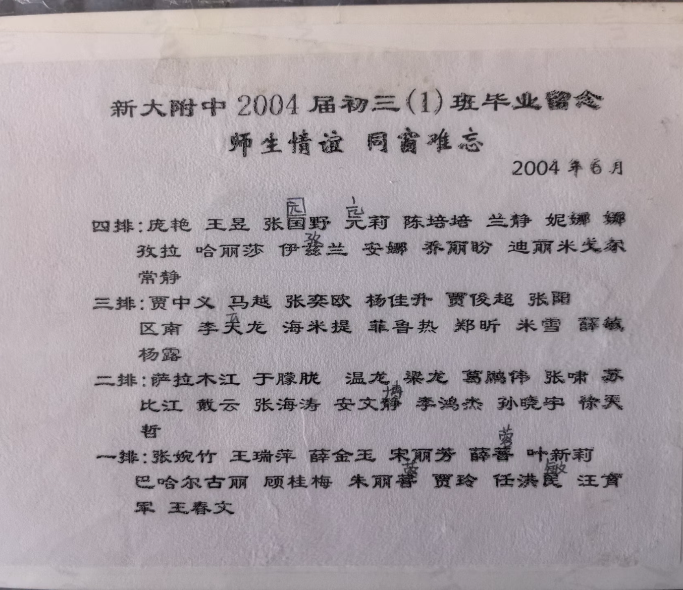 于朦胧的初中同学也晒出了毕业合影缅怀