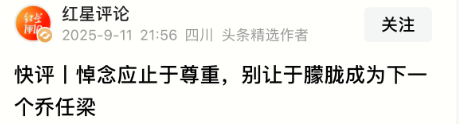 希望大家理性吃瓜,别让无端揣测变成刺向逝者及亲友的利刃。于朦胧的离开本已令人惋惜,过度挖掘隐私、拼凑所谓 “证据” 制造阴谋论,既是对逝者的不尊重,也会给其家人带来二次伤害。静候真相,以理性守住悼念的底线,才是对逝者最好的缅怀。